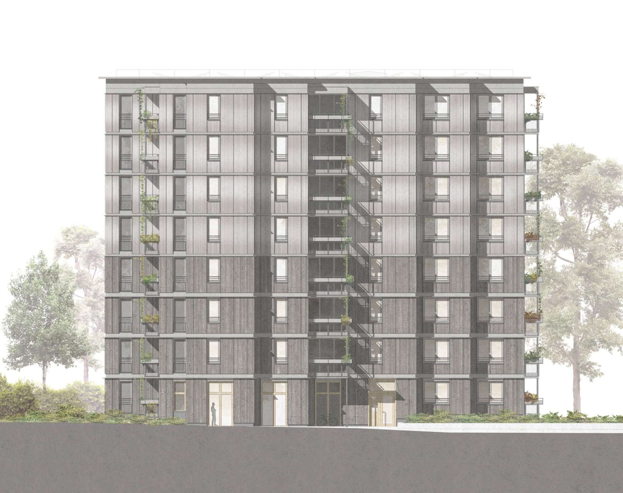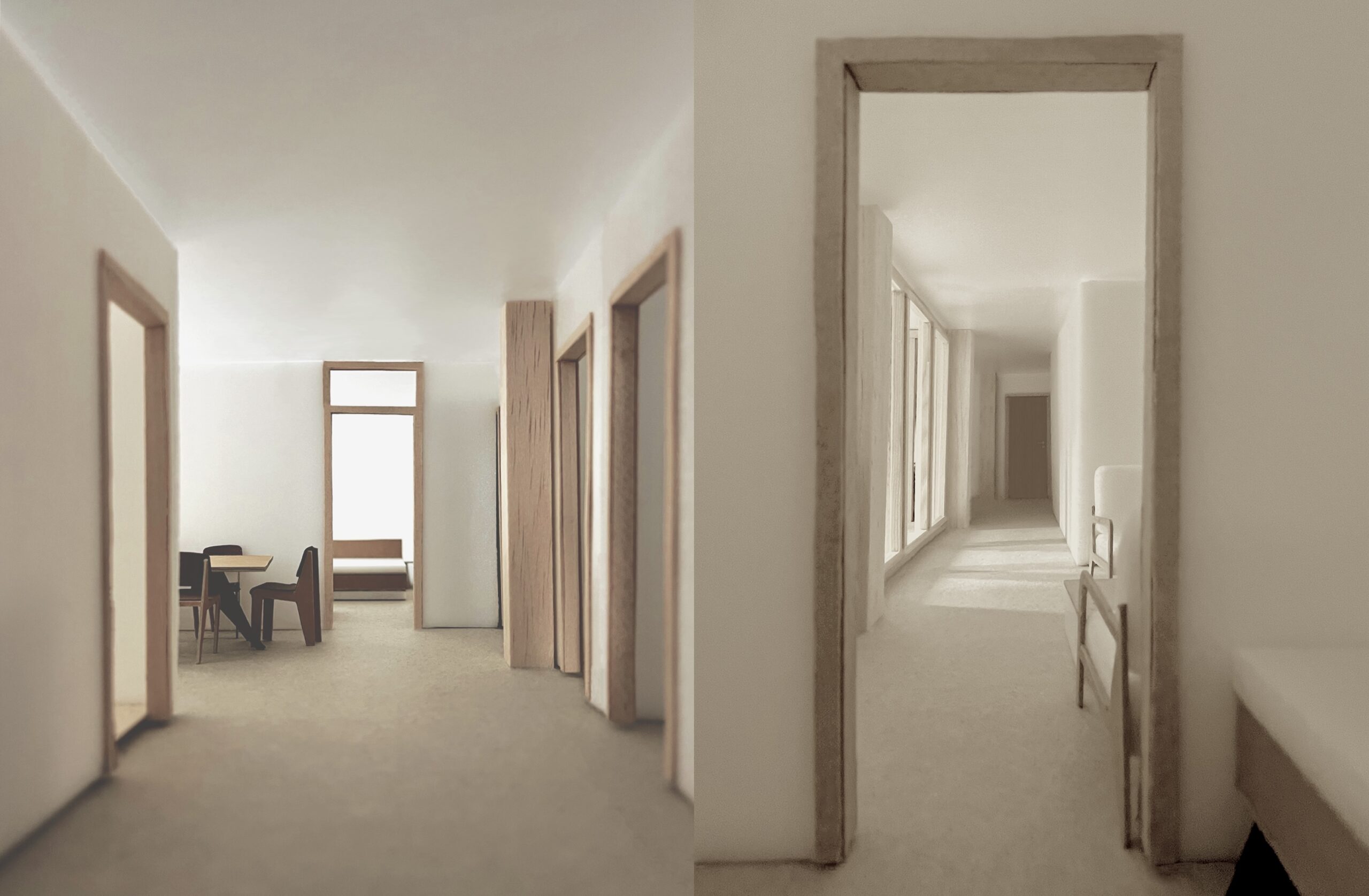 Auf Basis einer flexiblen, nutzungsoffenen und schlanken Skelettkonstruktion entwerfen wir modulare Wohnungsbauten mit Werkswohnungen für die Stadtwerke in München. Wie reagiert diese in sich strenge Geometrie auf die nicht rechtwinkligen Baukörper aus dem Masterplan? Welche Qualitäten lassen sich innerhalb dieses effizienten und nachhaltigen Raumgerüsts für den Wohnraum entwickeln?